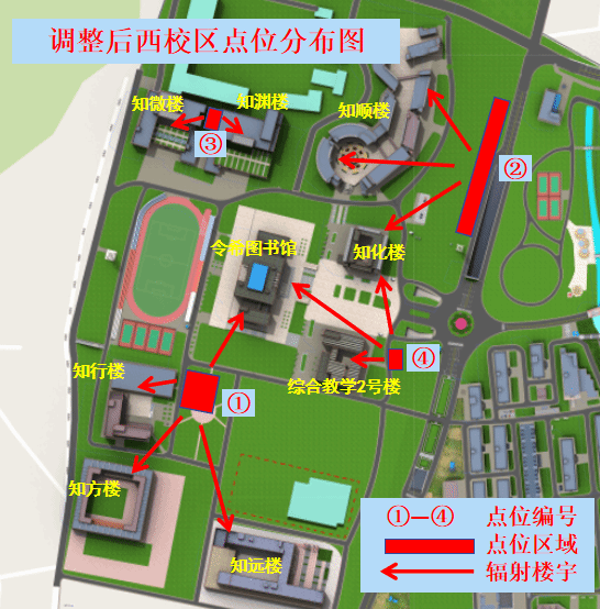 调整后西校区共享电动自行车点位分布图如下: