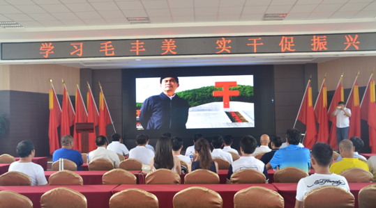 下午2时,在大梨树村党员活动中心的会议室里,同志们集中观看了介绍毛丰美同志先进事迹的纪录片《丰碑》。纪录片生动再现了毛丰美同志“忠诚、干净、担当”和“苦干、实干、巧干”的一生,全方位展现了大梨树村由昔日“八山半水一分田”的贫困小山村建设成为社会主义新农村的发展历程。当看到这个经常出现在镜头面前“风采奕奕的农村基层干部”因为病痛的折磨形容枯槁,却依旧坐着轮椅到现场指挥劳动时,在场的人无不为之动容。大家被毛丰美立场坚定、对党忠诚的政治品格,牢记宗旨、心系群众的为民情怀,淡泊名利、清正廉洁的高尚情操,敢于担当、攻坚克难的实干精神深深感动和折服。