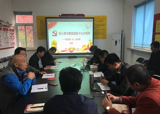 接着支部组织委员石峰同志以“深入学习贯彻党的十九大精神”为题,带领支部党员回顾了十八届一中全会到七中全会的会议重点,并就习近平总书记十九大报告中中国特色社会主义进入新时代的“五个定位”、习近平新时代中国特色社会主义思想“八大明确”、新时代坚持和发展中国特色社会主义的基本方略等重要阐述进行了详细解读。石峰同志号召大家立足岗位学思想,不忘初心跟党走,做一名合格的共产党员,永远在路上。
