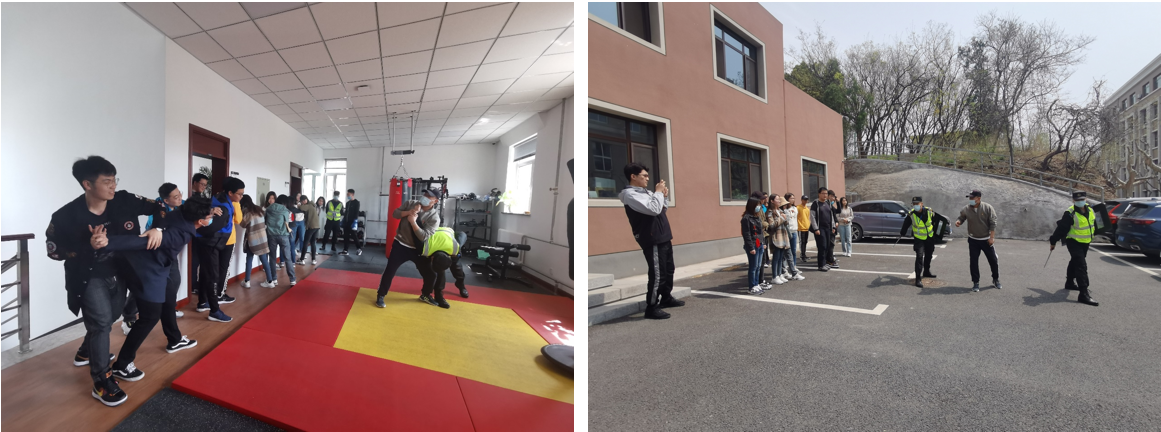 如何保卫?如何防卫?党史学习结束后,建工学部师生党员参观保卫处“警体训练室”,保卫干部化身教官现场传授“防身术”。在保卫处门前广场,保卫干部为师生们教授反恐知识,双方联合开展警体训练。练好本领,于保卫干部而言,是为守卫师生平安而打好基础;练好本领,于建工学部师生党员而言,是为争做担当民族复兴大任的时代新人而时刻准备。