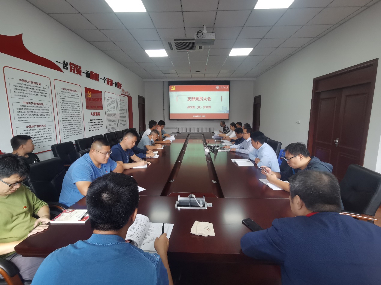 9月29日上午,保卫处党支部在保卫处三楼“党员之家”召开支部党员大会,开展“为人民服务”专题学习研讨和集体学习,全体同志参加会议。
