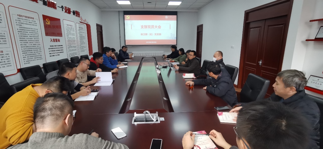 2月28日下午,保卫处党支部在保卫处三楼“党员之家”召开支部党员大会暨“学习回信精神 致敬冰雪健儿”主题党日活动,全体同志参加会议。