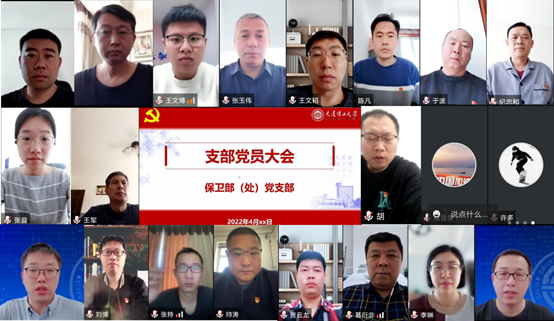 4月29日上午,因疫情防控需要,保卫处党支部通过腾讯会议召开线上党员大会,开展集体学习活动,会议由支部副书记李伟主持,全体同志参与会议。