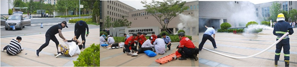 校庆日前夕,为进一步提升我校应急维稳处突能力,学校联合内保支队、消防、特警、应急救援、医疗救护等单位在经管学院广场开展突发事件应急处置实战演练。