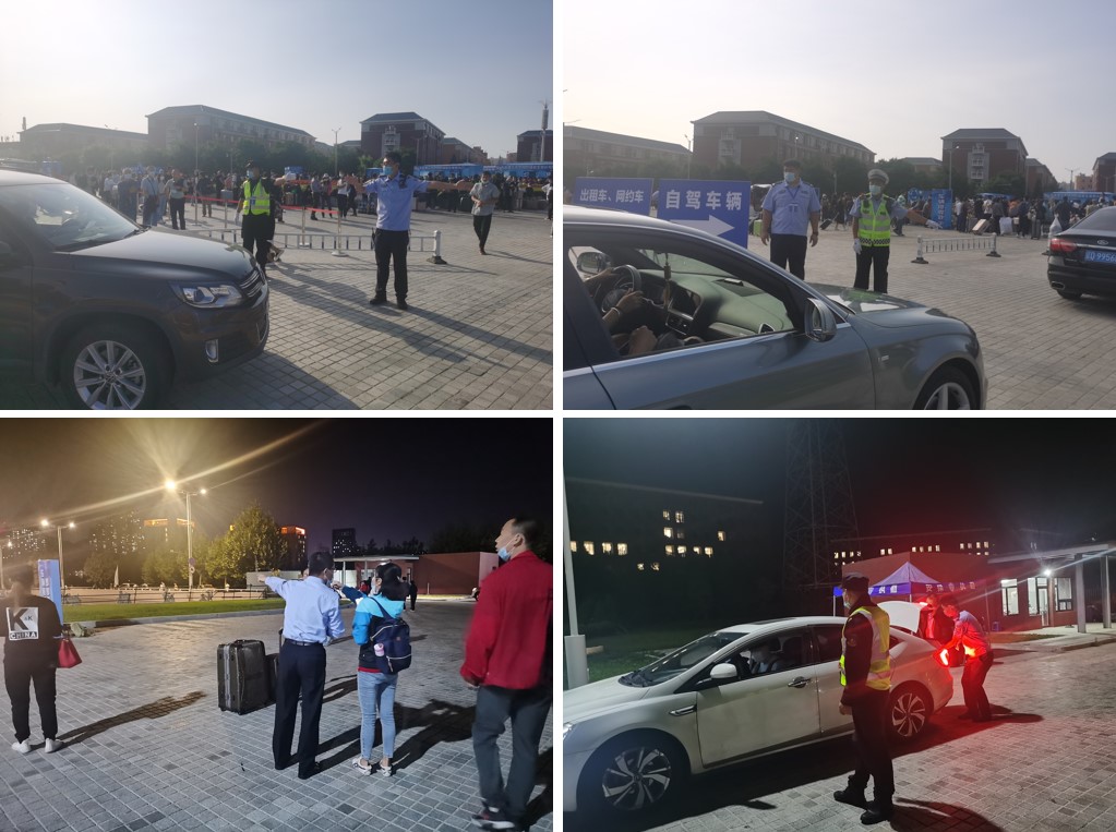 为迎接“疫”后初见,保卫处提前制定详细安保执勤方案及交通管理方案,做好安保人员工作培训和安排部署。为了巩固来之不易的抗疫成果,保卫处提前对报到区域进行封闭管理,备好防疫物资以应对突发情况,反复演练确定新生报到人行路线及送行车辆行驶路线。迎新当日一早,报到区域各执勤疏导点保卫人员全部上岗,提示新生提前准备“一测四查”,引导协助新生前往报到登记点,疏导家长顺畅离校。