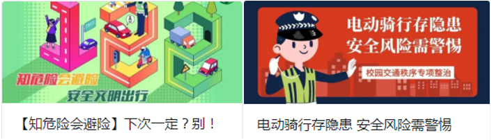 “12·2”前后,保卫处依托“平安大工”微信公众号、抖音号、电子宣传栏、“i大工”APP等新媒体平台,先后发布《知危险会避险:下次一定?别!》《电动骑行存隐患,安全风险需警惕》等图文推送,持续推介交通安全知识,增强师生交通安全意识,让校园交通参与者了解不同出行方式的安全风险,学会规避潜在风险、确保自身平安。