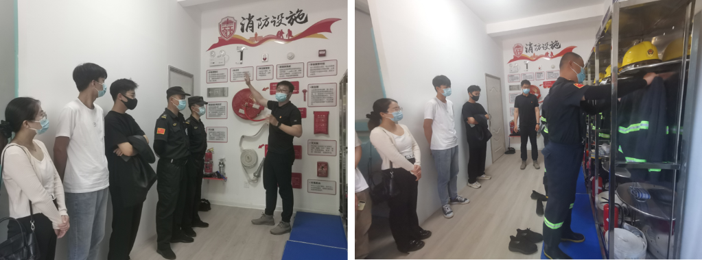 走进学生社区,开展消防安全知识讲座,《燃烧、爆炸与火灾》主题讲座拉开了本次活动的序幕,为同学们讲解燃烧、爆炸、火灾的基本原理。随后,保卫处消防科科长王迅带领同学们前往西山生活区微型消防站参观,重点介绍消防专用设施、灭火器材装备以及“5分钟到场”扑救初起火灾的快速反应机制流程等。志愿消防队队员还现场演示快速穿戴消防战斗制服,让同学们真切感受了一把“消防出警”速度。