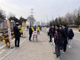 保卫处张持老师结合校园交通情况,向现场师生介绍骑行注意事项,倡导师生在停车点位内规范停车,维护良好的校园交通环境。培训老师详细讲解骑行规范,演示如何正确骑行,提醒注意严控车速、佩戴头盔,明确一人一车、禁止骑行载人。