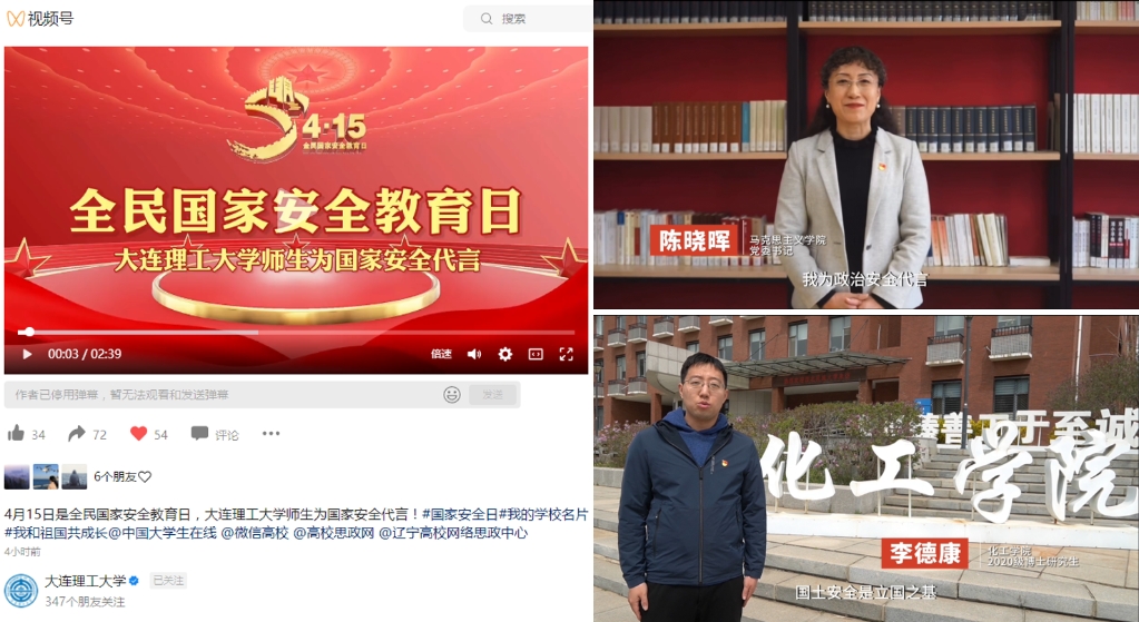 录制“我为国家安全代言”主题视频精准宣传,为提高宣传影响力,扩大宣传覆盖面,组织学校16个学部学院师生代表为16个国家安全重点领域代言,以榜样力量打造校园特色国家安全教育名片。主题视频在师生中引起强烈反响,师生们积极转发并留言互动,主动传播国家安全知识,弘扬爱国情怀,传递青春正能量,为全民国家教育营造了良好的社会氛围。