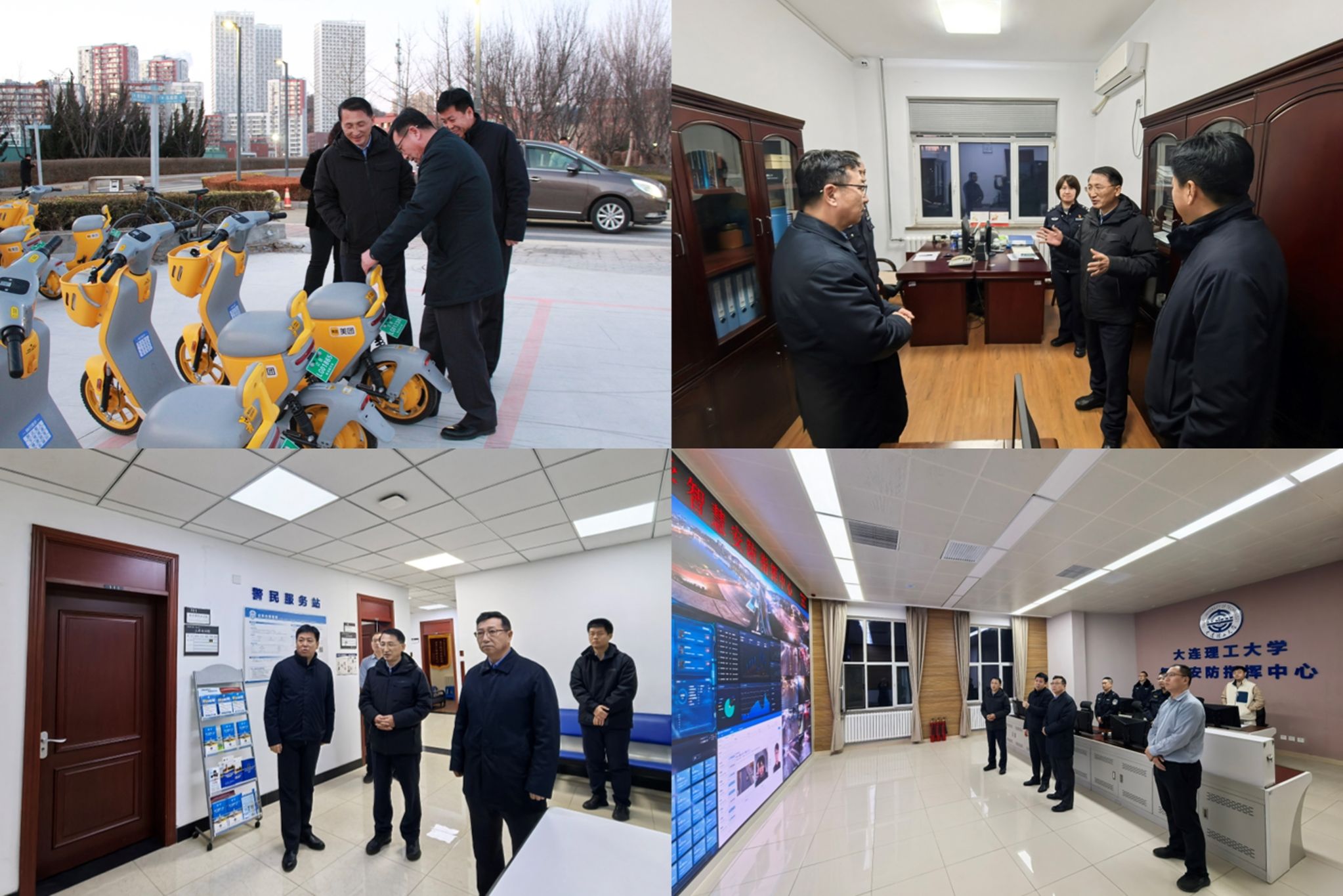 会后,李显通一行前往我校非机动车停车点位和保卫处进行工作调研,对校园交通管理情况、智慧安防指挥中心、警民服务站、警务工作站等工作进行指导。