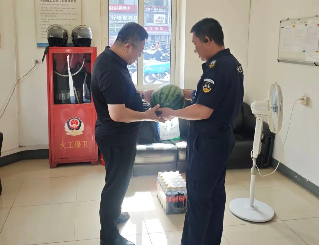 下午,保卫处领导为校内各安保岗位送去“送清凉”物资,以确保安保人员在炎炎夏日中能够得到及时的关怀与帮助,鼓励他们继续发扬爱岗敬业的精神,为学校的安全稳定贡献力量,为学校师生创造一个更加安全、和谐的学习与工作环境。