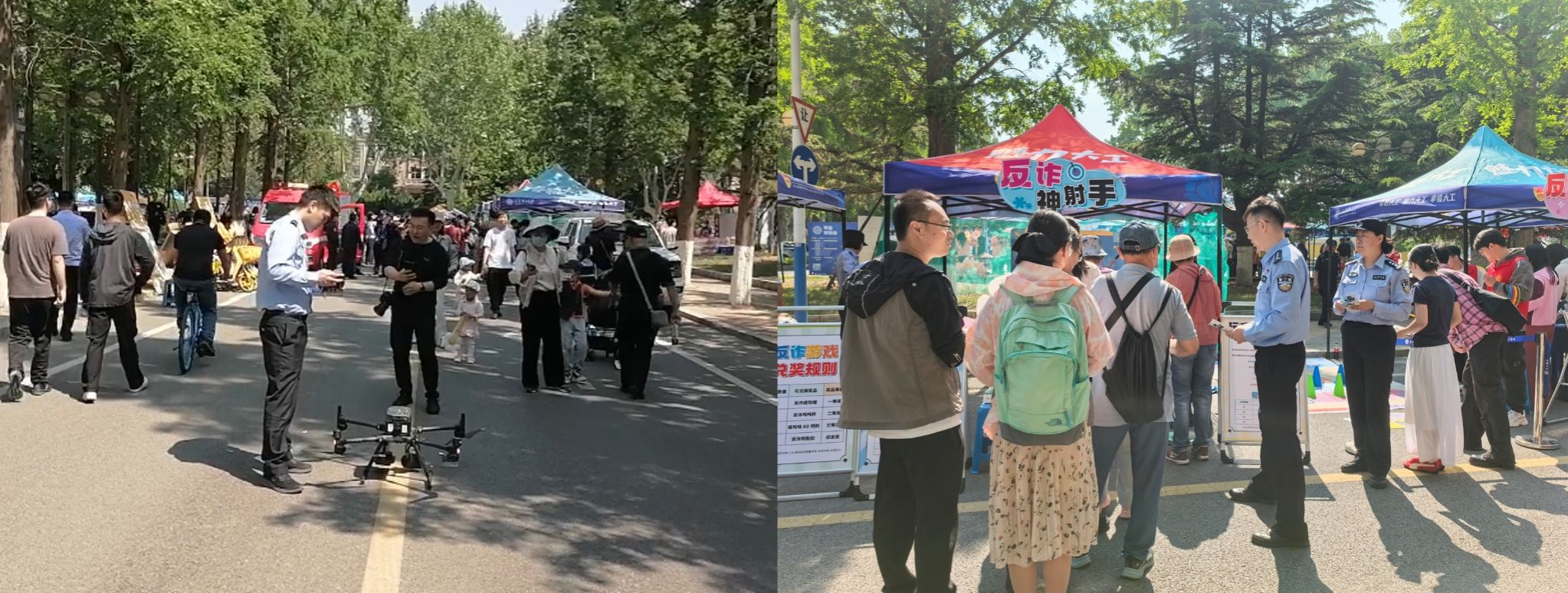 “警校联动筑平安”展区设置了反诈游戏区、反诈宣讲区、校园“随心骑”和共享电动自行车体验区、警用无人机展示区和消防救援车展示区,让师生在互动体验中学习安全常识。