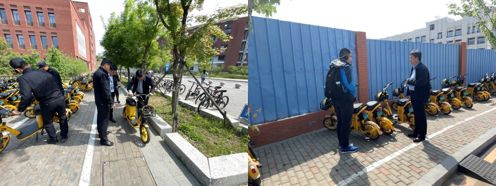 5月10日,由18名保卫干部、29名安保队员组成的检查组开展了今年第六次安全检查,对教学区10处共享电动自行车停车点位进行车辆全覆盖检查。重点排查共享电动自行车的刹车、头盔、车座、脚蹬、链条等问题,对问题车辆一一记录并移出停车区域。检查结束后,要求运营企业立即对问题车辆进行停运并检修,将无法正常使用的车辆及时处置出校,确保全部车辆安全无故障。