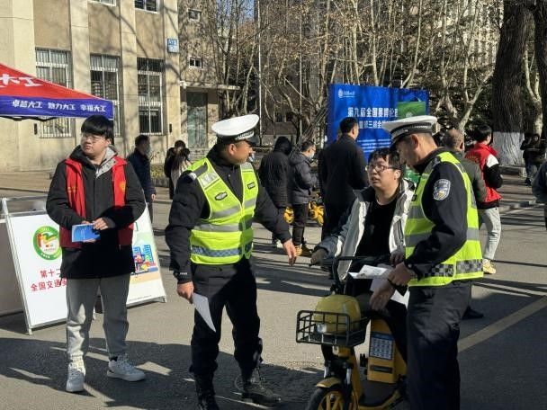 12月2日是第12个全国交通安全日,为进一步增强全校师生交通安全意识和法治意识,营造安全和谐、文明有序的校园交通环境,12月1日中午,在八角楼前广场举办以“文明交通,你我同行”为主题的“12.2全国交通安全日”交通安全宣传活动。高新园区交警大队副大队长胡志刚和中队长高恩庆带队进校与保卫干部和学生志愿者共同开展宣教活动。