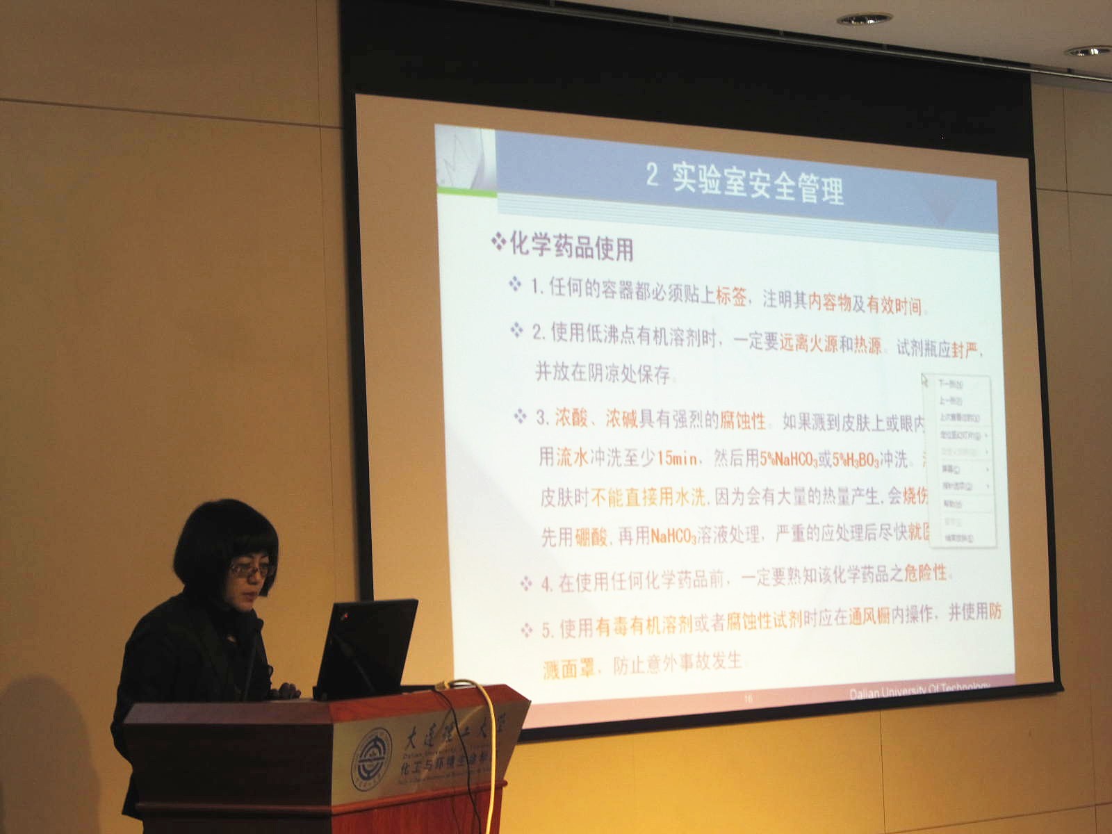 本次活动以加强安全意识、普及消防知识和强化实验室安全为主题,校保卫处负责校园消防安全管理工作的翟建伟老师以及化工学部果学军老师做了消防与实验室安全知识专题讲座。160多名研究生及部分青年教师参加了本次活动。
