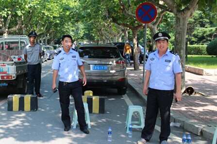 报到当日,车站码头接站车、新生家长自驾车辆纷纷涌入校园,校园内车辆较往日增加1000余台,如何保证道路畅通及车辆停放成为迎新期间交通管理的首要任务。保卫处安排10名同志及保安员30余人,分布在校园内各个路口及重要路段,引导车辆有序停放,及时疏导拥堵,保证道路畅通。在主楼广场前设置的临时封闭口,在引导车辆分流的同时,也成为第一道“天然”迎新咨询台,迎接着来自四面八方的新生和家长。