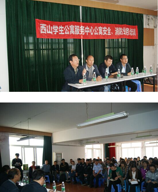 为进一步提高后勤处有关工作人员的公寓安全、消防安全知识及灭火技能,贯彻校园安全常抓不懈的工作方针,9月29日下午,保卫处负责校园治安及消防工作的相关工作人员来到西山学生公寓服务中心为百余名传达员及保安人员开展业务培训。