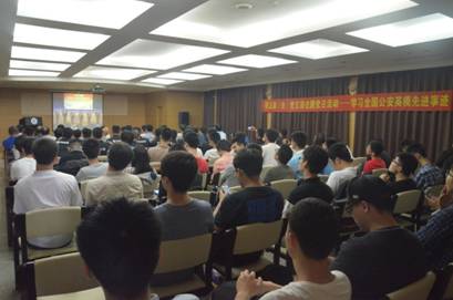 为深入学习贯彻习近平总书记在会见全国公安系统英雄模范立功集体表彰大会代表时的重要讲话精神,大力弘扬公安英模精神,公安部组织了全国公安系统英雄模范立功集体先进事迹报告团,分赴全国各地做巡回报告。来我校做报告的是第一分团,成员分别是河北省饶阳县公安局刑侦大队大队长冀春雷、辽宁省辽阳市公安局禁毒支队支队长张喆、河南省郑州市公安局商城路分局案侦大队教导员刘成晓、新疆维吾尔自治区公安边防总队喀什地区边防支队副支队长张永周、上海市公安局经济犯罪侦查总队一支队政委李江晖。